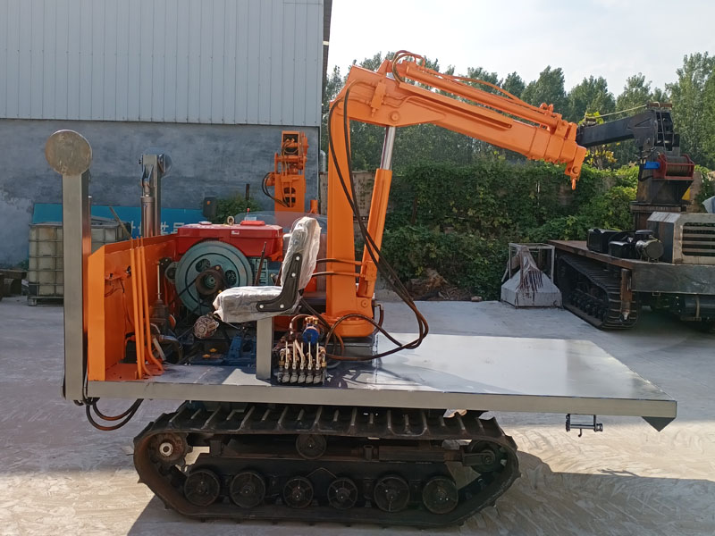 此款折臂吊自身可加裝履帶底盤,其優點是著地面積比車輪式大,所以著地壓強小,另外與路面粘著力較強,所能提供的驅動力大。對路面的要求比較低,越野能力較強。履帶車有其自身的方向助力和渦輪增壓系統,根據不同場合和工作的需要,也可選配其他配置。